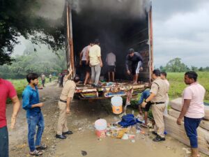 कंटेनर में के अन्दर रखा सामान काफी हद तक जल गया कंटेनर के ड्राइवर महेंद्र कुमार द्वारा बताया गया कि अचानक बिजली के तार टच होने से चिंगारी निकल कर कंटेनर के अंदर चली गई तो कंटेनर में रखे घरेलू सामान फ्रिज गोदरेज की अलमारी आदि सामान में आग लग गई।