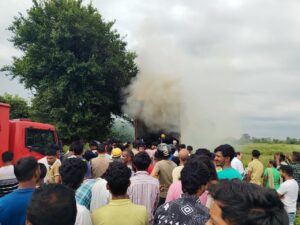 कंटेनर में बिजली की चिंगारी से लगी आग कंटेनर के अंदर रखा सामान जलकर राख