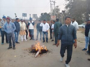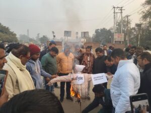 भाजपा कार्यकर्ताओं ने गैंडीखाता में कांग्रेस का पुतला दहन कर किया विरोध प्रदर्शन