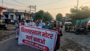 लालढांग चिल्लरखालमोटरमार्ग निर्माण को कांग्रेसियो नेगांधी चौक तक कैंडिल मार्च निकाला