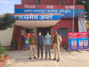 माननीय न्यायालय से प्राप्त गैर जमानतीय वारण्टों की शत प्रतिशत तामील किये जाने हेतु वरिष्ठ पुलिस अधीक्षक हरिद्वार के निर्देशन में थाना श्यामपुर में चलाये गये अभियान वांछितों/ईनामी/वारण्ट की गिरफ्तारी अभियान के क्रम में थाना श्यामपुर पुलिस टीम केव0उ0नि0 मनोज रावत का0 राहुल देव ने वारण्टी शराफत पुत्र शमशेर निवासी तपडोवाली थाना श्यामपुर हरिद्वार उम्र 35 वर्ष नबाब पुत्र शमशेर निवासी ग्राम तपडोवाली थाना श्यामपुर जनपद हरिद्वार उम्र 42 वर्ष दोनों वारण्टियोको सटीक जानकारी पर उनके मकानों से गिरफ्तार कर थाना श्यामपुर लाया गया