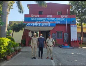 वरिष्ठ पुलिस अधीक्षक हरिद्वार के निर्देशन में जनपद पुलिस द्वारा वारण्टी अभियुक्तों की गिरफ्तारी हेतु लगातार प्रभावी कार्रवाई की जा रही है इसी क्रम में थानाध्यक्ष थाना श्यामपुर के नेतृत्व में एस0एस0आई0 मनोज रावतका0 राहुल देव पुलिस टीम द्वारा वारण्टी राकेश उर्फ बबलू पुत्र स्व0 श्री मलखान निवासी ग्राम फूलसन्धा थाना नहटौर जिला बिजनौर उ0प्र0 उम्र- 47 वर्ष को उसके घर से गिरफ्तार किया गया ।माननीय न्यायालय द्वारा कई बार समन भेजे जाने के बावजूद राकेश हाजिर नहीं हुआ, जिस कारण अदालत द्वारा उसके विरुद्ध गिरफ्तारी वारंट जारी किया गया था।